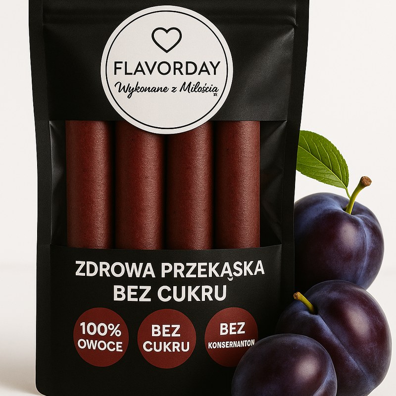 Naturalna pastyła i rolsy śliwkowe bez cukru – 100% owoców, bez glutenu i konserwantów. Zdrowa przekąska dla dzieci i dorosłych. Odkryj prawdziwy smak śliwek na FlavorDay.pl!