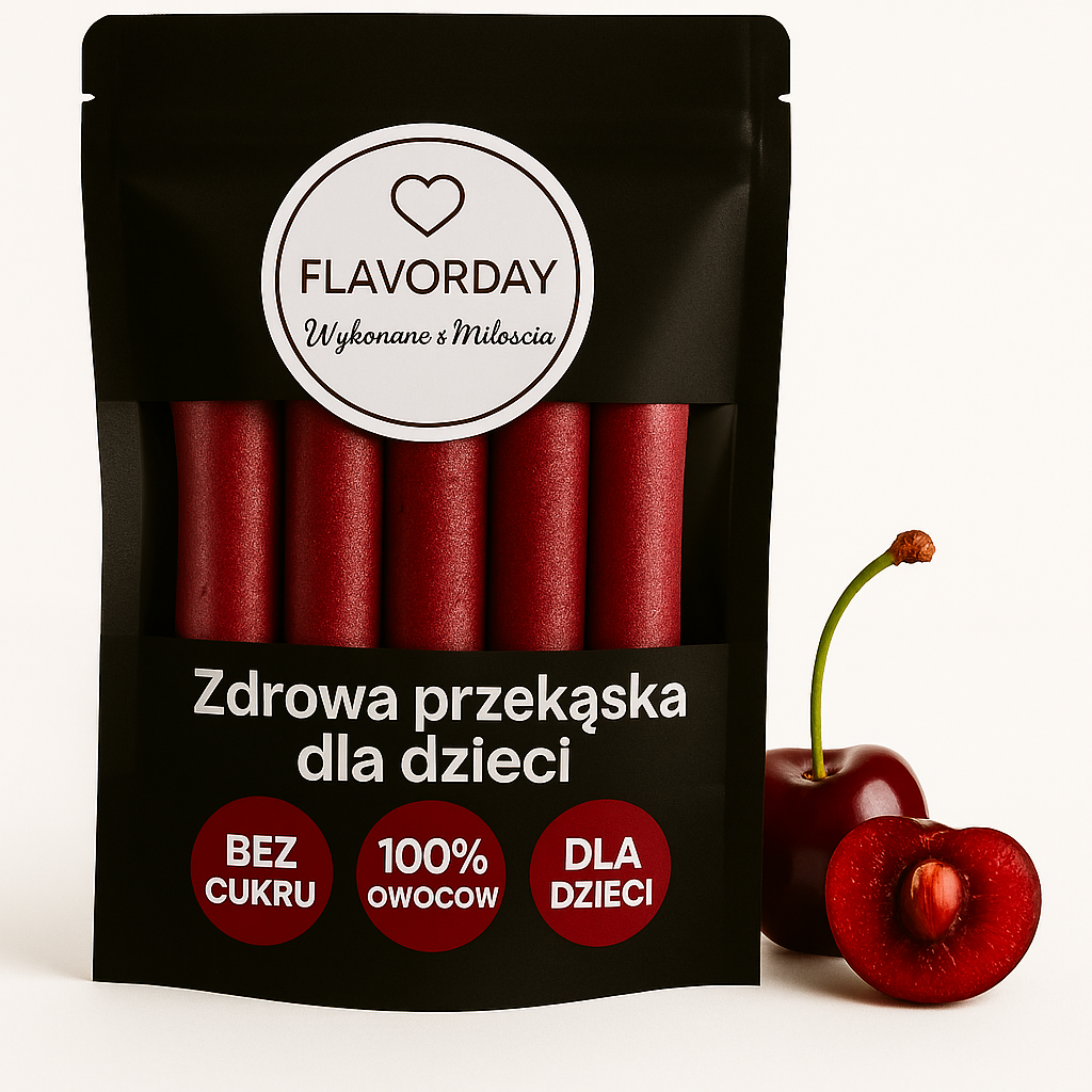 Rollsy pastyła wiśniowa 50g od FLAVORDAY to idealna przekąska dla całej rodziny – zdrowa, smaczna i w 100% owocowa. Dzięki niej możesz cieszyć się naturalnym smakiem wiśni w każdej chwili – bez wyrzutów sumienia!